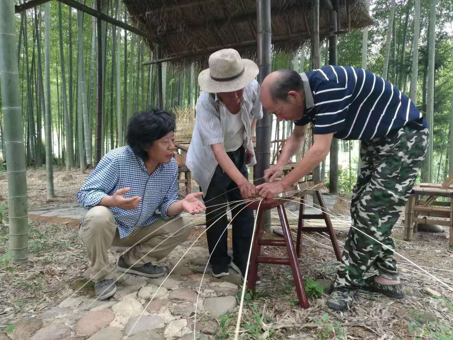 11-12日,林樂成一行還在石角村植物纖維工坊與溪口鎮(zhèn)的竹編工匠藝人進(jìn)行了現(xiàn)場(chǎng)竹制品制作工藝交流,探討怎樣實(shí)現(xiàn)工藝品的日用化和日用品的工藝化,交流活動(dòng)輕松愉快,一張照片圖案,經(jīng)過工匠藝人的手就能變成可觸摸的制品,感覺非常奇妙!10日一早,集團(tuán)公司、工藝品公司消薄工作組和林樂成一行冒著“利奇馬”帶來的大風(fēng)大雨,趕到省二輕集團(tuán)下屬工藝品公司幫扶結(jié)對(duì)的寺下村,深入調(diào)查研究,實(shí)地了解竹編廠生產(chǎn)經(jīng)營(yíng)和產(chǎn)品市場(chǎng)境況,與鎮(zhèn)、村委班子成員進(jìn)行了現(xiàn)場(chǎng)交流。